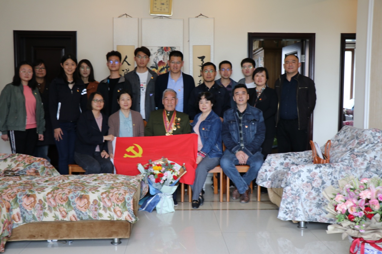 为贯彻落实习近平总书记关于开展好党史学习教育的指示要求,充分发挥“五老”的育人优势,教育引导广大青年学生和教师探寻初心使命,弘扬革命精神,传承红色基因。4月21日下午,天津中医药大学离退休党委联合中医药研究院党委、中药制药工程学院党委、机关党委、教务党总支共同组织开展了党史学习教育实践活动,党员代表们走进曾参加过抗美援朝战争的老战士崔藏筠(原校保卫处处长)家中,听老人讲述革命传统与新中国建设初期老一辈艰苦奋斗的故事。同时送上全校师生、党政领导的问候和美好祝福。