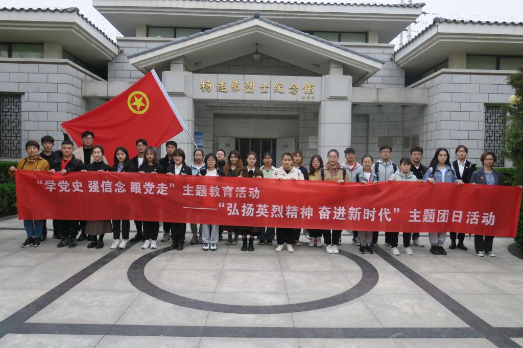 4月2日清明节前夕,校团委组织“青马工程”学员和学生骨干前往杨连弟烈士纪念馆开展“学党史 强信念 跟党走”主题教育活动暨“弘扬英烈精神 奋进新时代”主题团日活动,校团委副书记周婧同志参加活动。
